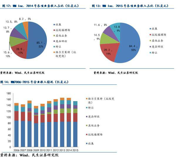 據(jù)公司2015年年報披露,于法國當(dāng)?shù)?,公司通過垃圾收集、運(yùn)輸以及處理所簽署的訂單合同預(yù)計(jì)累計(jì)收益達(dá)到了1.29億美元,在歐洲其他國家簽訂相關(guān)合同預(yù)計(jì)累計(jì)收益可達(dá)9.83億美元。